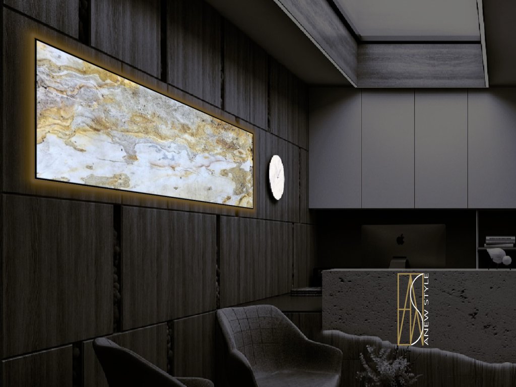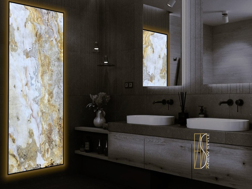Verze SLIM je subtilní provedení svítícího kamenného panelu s tloušťkou pouhých 16 mm, s externím zdrojem 230/24 V a síťovým vypínačem. Svislá i vodorovná montáž svítícího panelu je možná pomocí přiloženého systému neodymových magnetů.